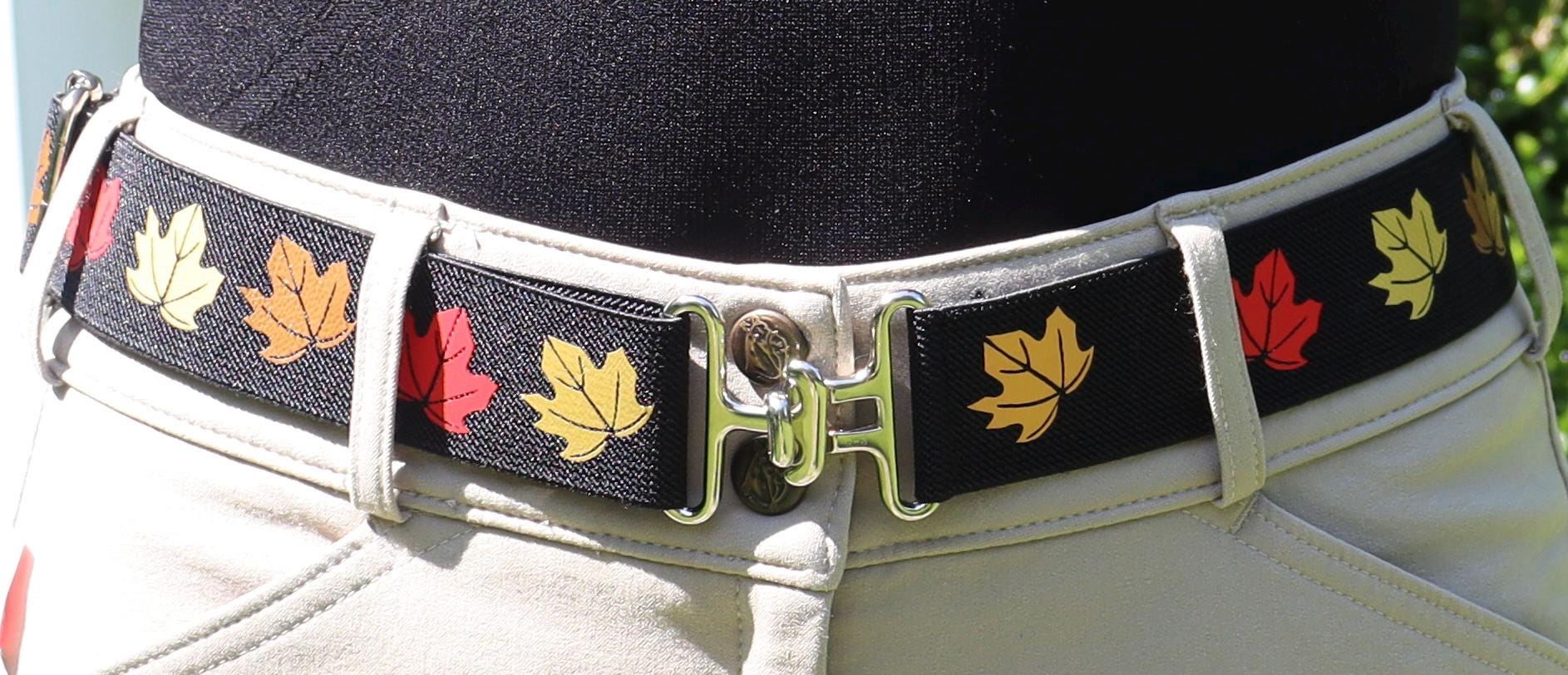 1.5 inch adjustable equestrian belt, Autumn leaves horseback riding belt, Black or red elastic horse riding belt, equestrian gift