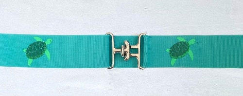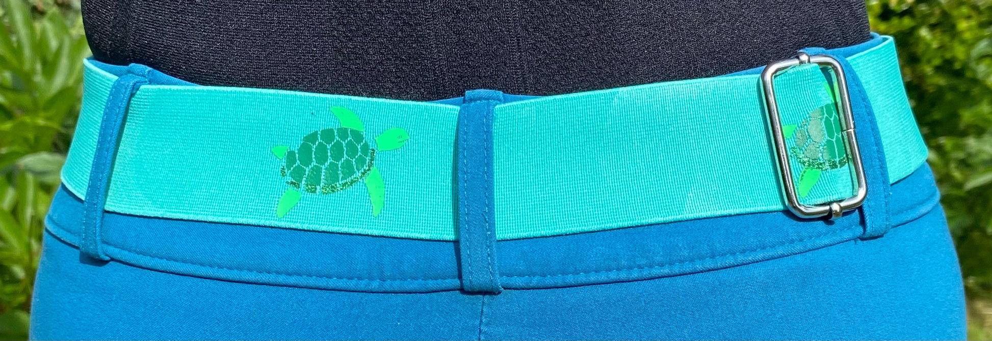 1.5 inch elastic equestrian belt with surcingle buckle. Sea turtle belt for horseback riders. Half of all proceeds will be donated to The Sea Turtle Conservancy.